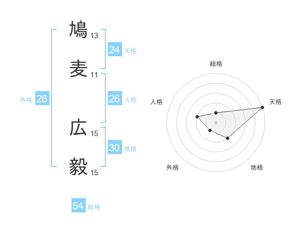 鳩麦 広毅さんの天格は24画の5点!