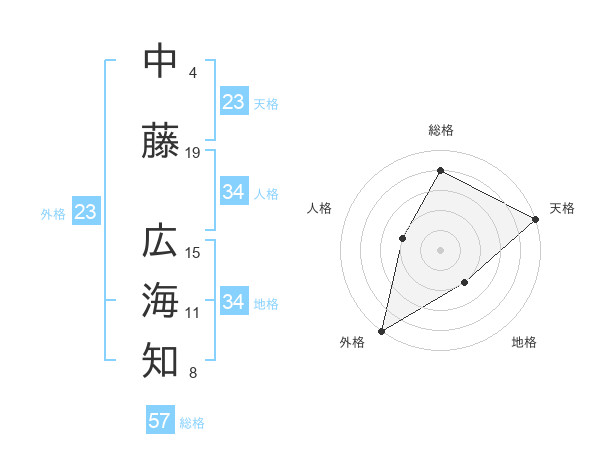 中藤 広海知さんの総格は57画の4点!