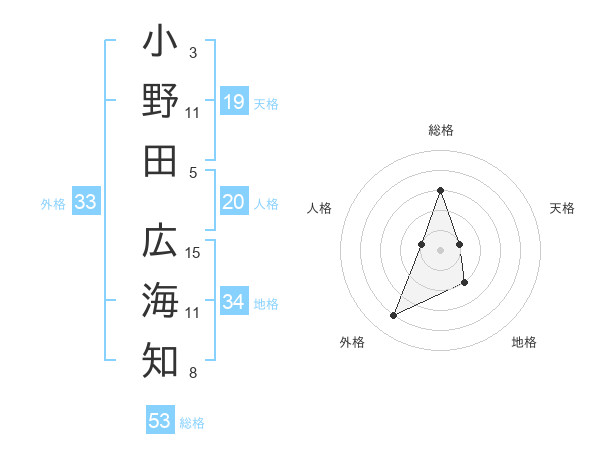 小野田 広海知さんの総格は53画の3点!