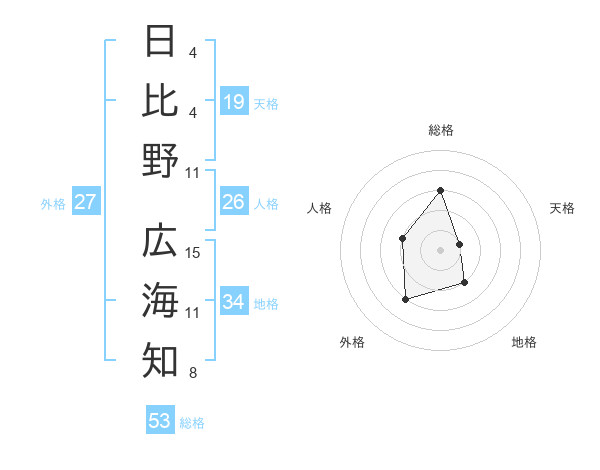 日比野 広海知さんを姓名の画数から五運を鑑定