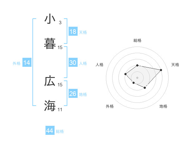 小暮 広海さんの総格は44画の2点!