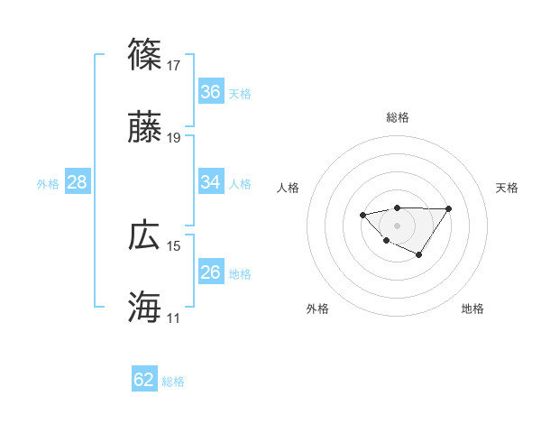 篠藤 広海さんを姓名の画数から五運を鑑定