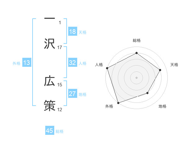 一沢 広策さんの外格は13画の5点!