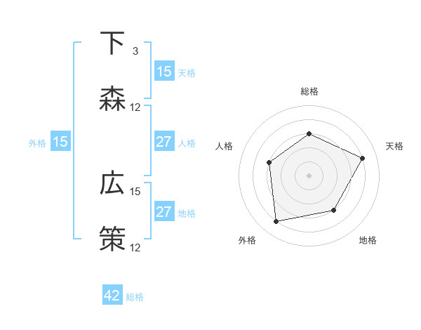 下森 広策さんの総格は42画の3点!