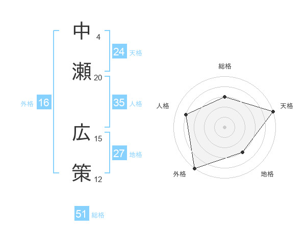 中瀬 広策さんの総格は51画の3点!