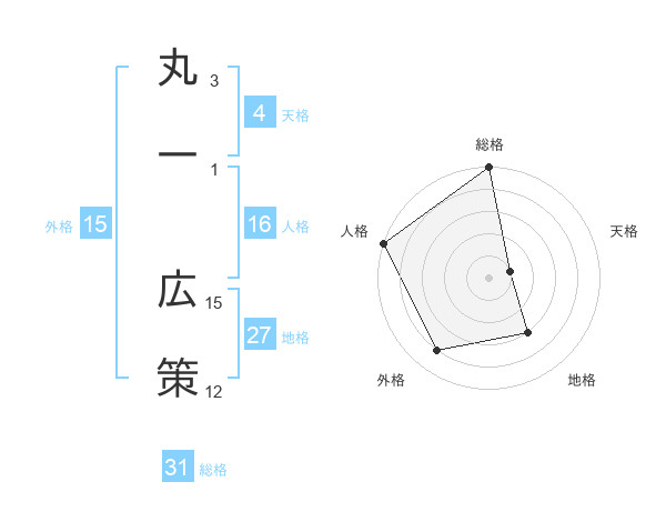丸一 広策さんの総格は31画の5点!