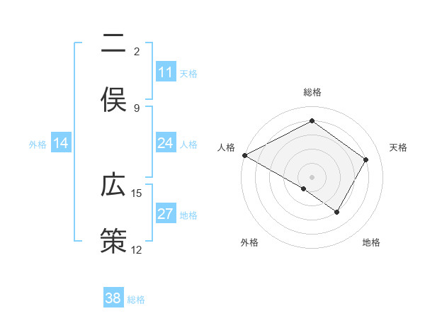 二俣 広策さんを姓名の画数から五運を鑑定
