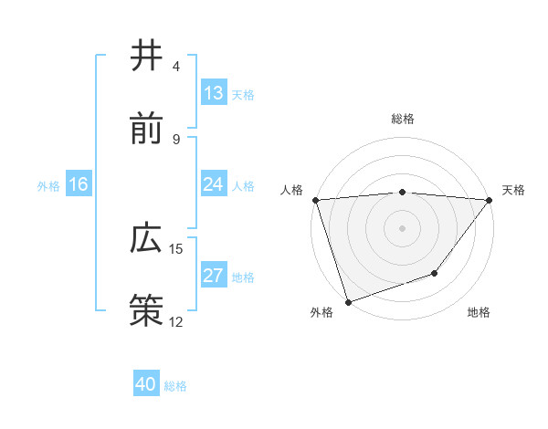 井前 広策さんの総格は40画の2点!
