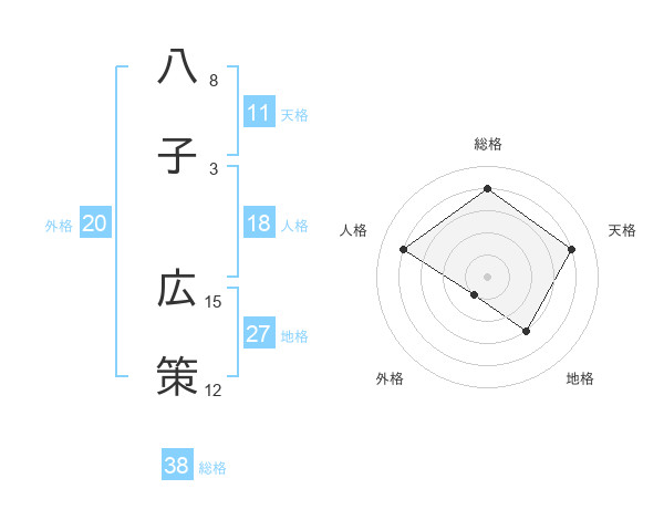 八子 広策さんの総格は38画の4点!