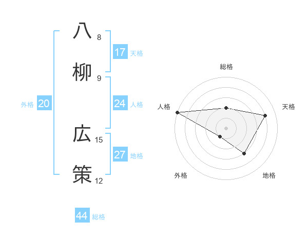 八柳 広策さんの天格は17画の4点!