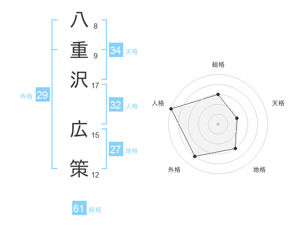 八重沢 広策さんを姓名の画数から五運を鑑定