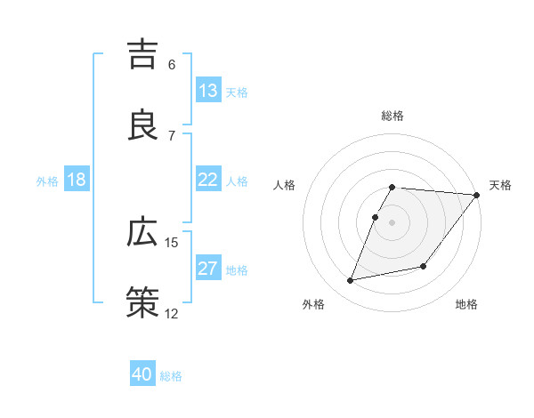 吉良 広策さんの天格は13画の5点!