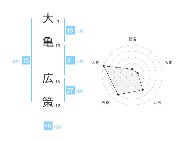 大亀 広策さんの総格は46画の1点!