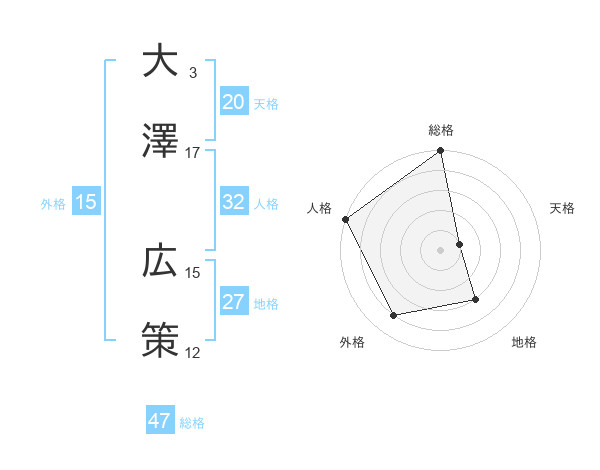 大澤 広策さんの総格は47画の5点!
