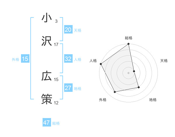 小沢 広策さんの総格は47画の5点!