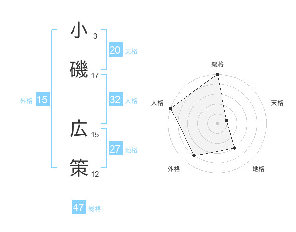 小磯 広策さんの総格は47画の5点!