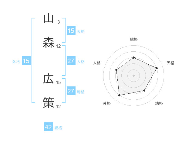 山森 広策さんの天格は15画の4点!