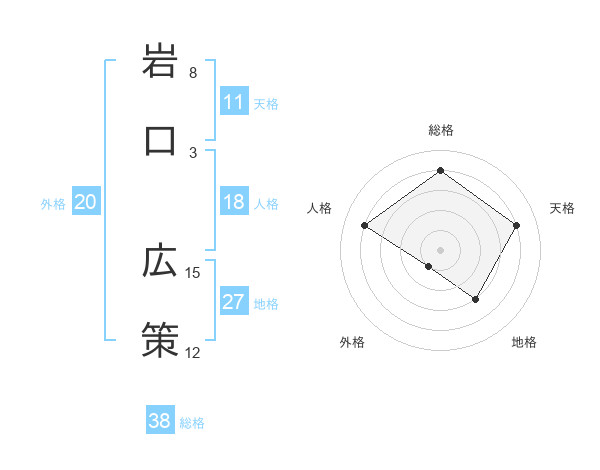 岩口 広策さんの総格は38画の4点!