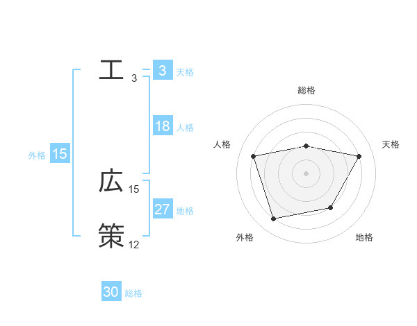 工 広策さんの総格は30画の2点!