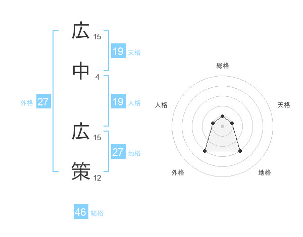 広中 広策さんを姓名の画数から五運を鑑定