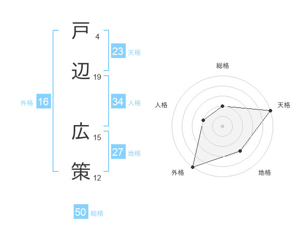 戸辺 広策さんを姓名の画数から五運を鑑定