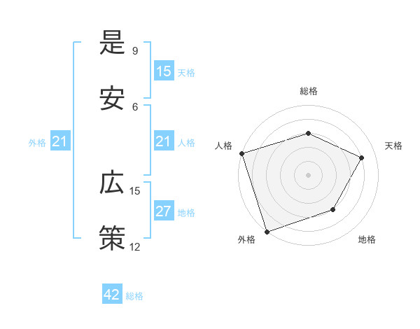 是安 広策さんの外格は21画の5点!
