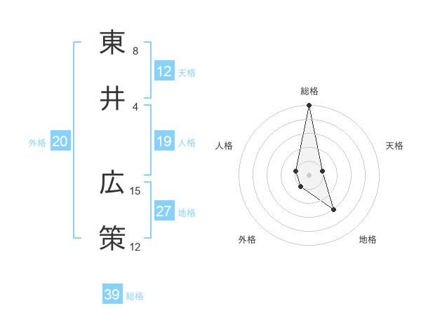東井 広策さんの総格は39画の5点!