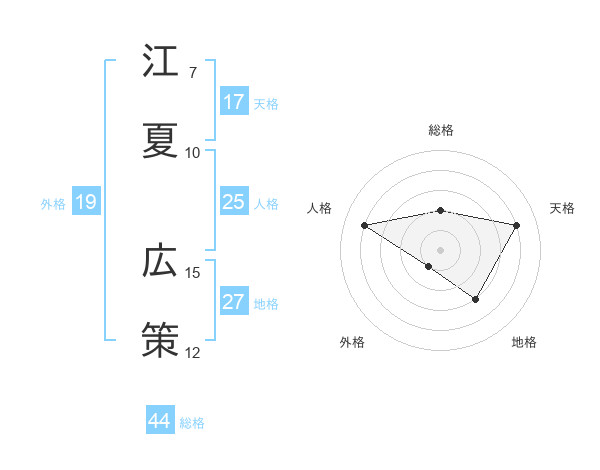 江夏 広策さんの天格は17画の4点!