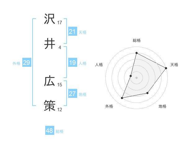 沢井 広策さんの天格は21画の5点!