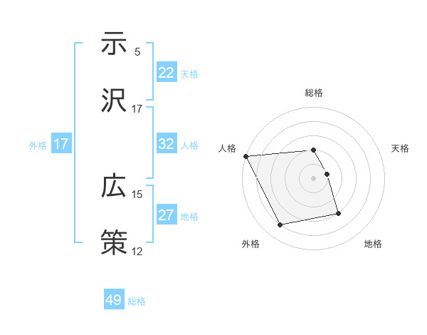 示沢 広策さんの天格は22画の1点!