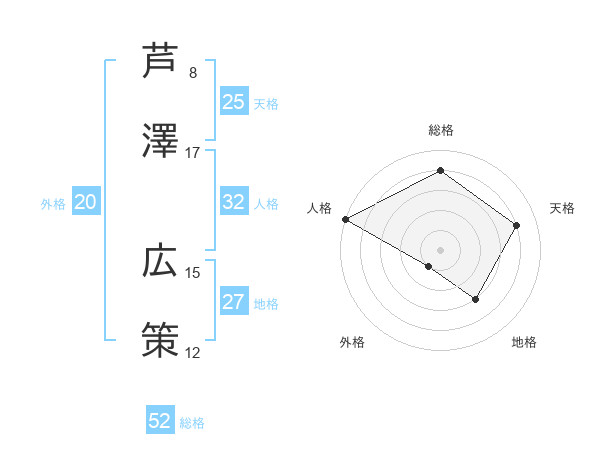 芦澤 広策さんの総格は52画の4点!