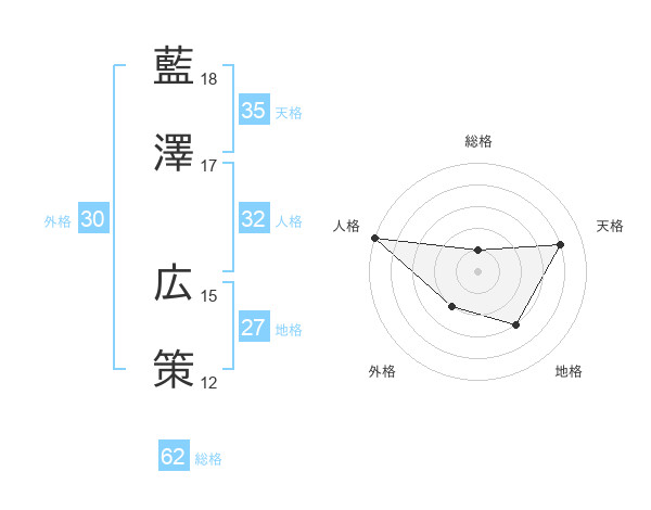 藍澤 広策さんの総格は62画の1点!