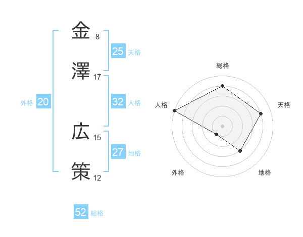 金澤 広策さんの総格は52画の4点!