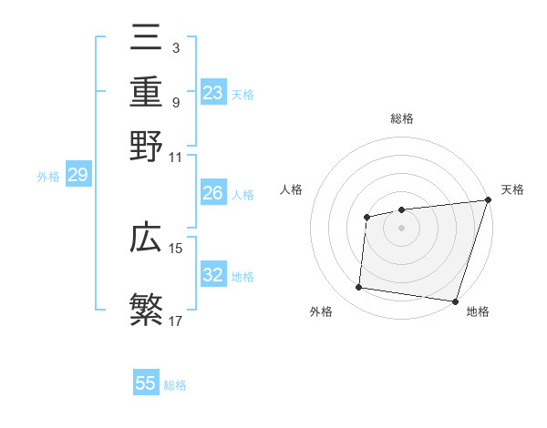 三重野 広繁さんを姓名の画数から五運を鑑定