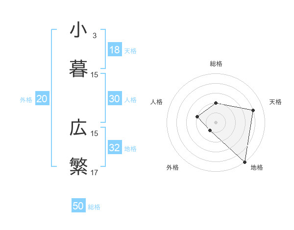 小暮 広繁さんを姓名の画数から五運を鑑定
