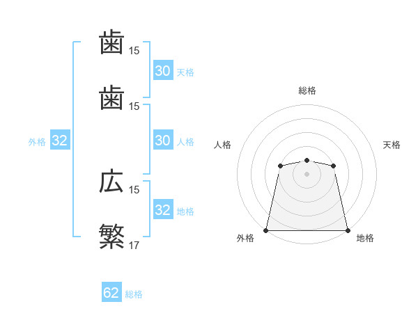 歯歯 広繁さんを姓名の画数から五運を鑑定