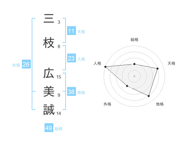 三枝 広美誠さんを姓名の画数から五運を鑑定