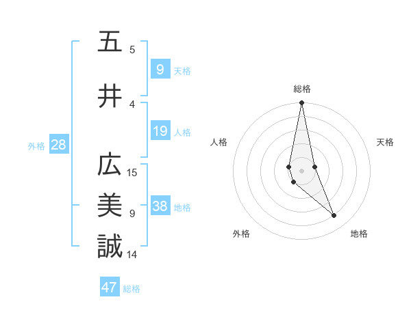 五井 広美誠さんを姓名の画数から五運を鑑定