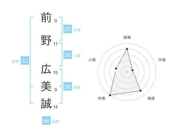 前野 広美誠さんを姓名の画数から五運を鑑定