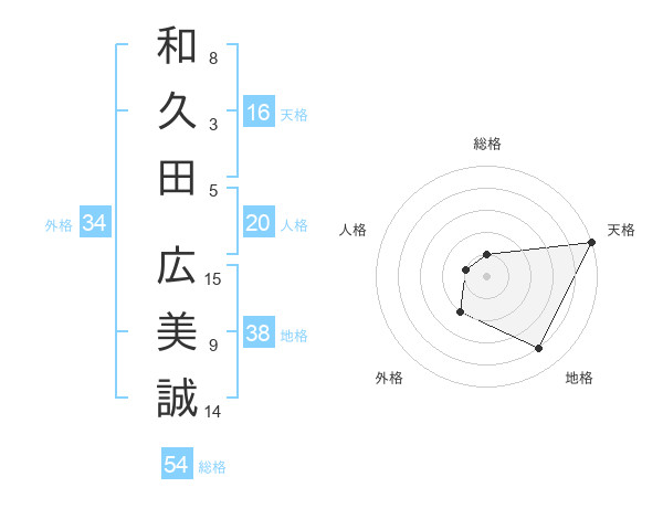 和久田 広美誠さんを姓名の画数から五運を鑑定