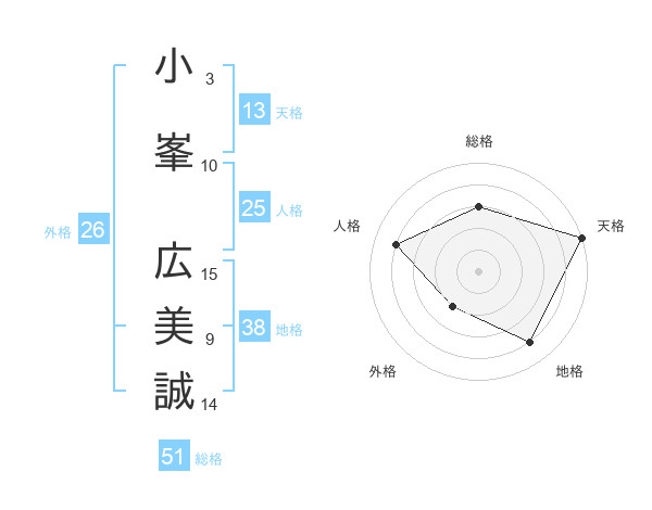 小峯 広美誠さんを姓名の画数から五運を鑑定