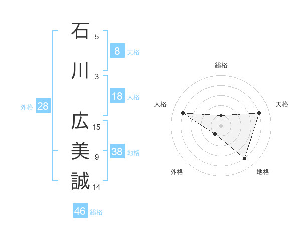 石川 広美誠さんの天格は8画の4点!