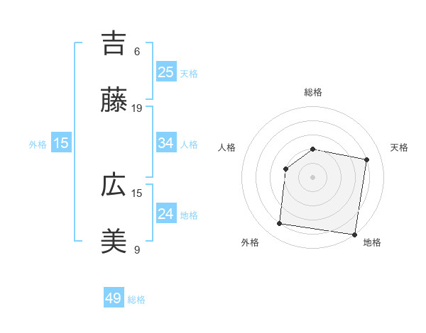 吉藤 広美さんを姓名の画数から五運を鑑定