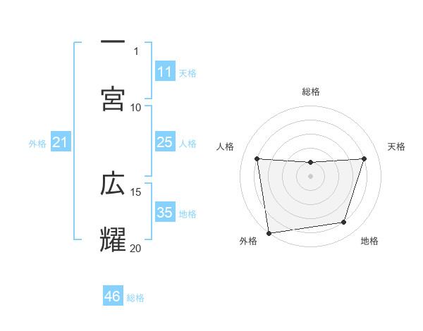 一宮 広耀さんを姓名の画数から五運を鑑定