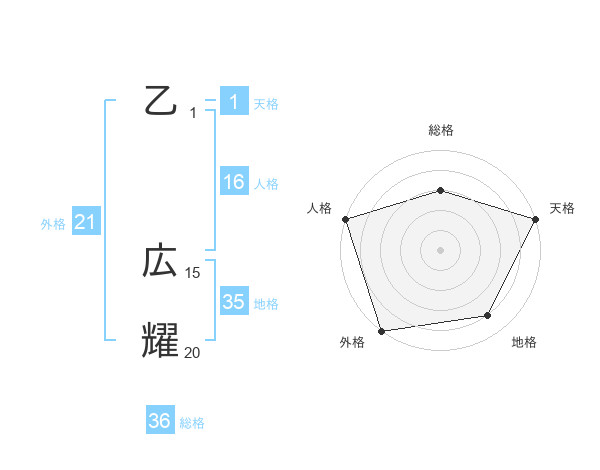 乙 広耀さんの外格は21画の5点!