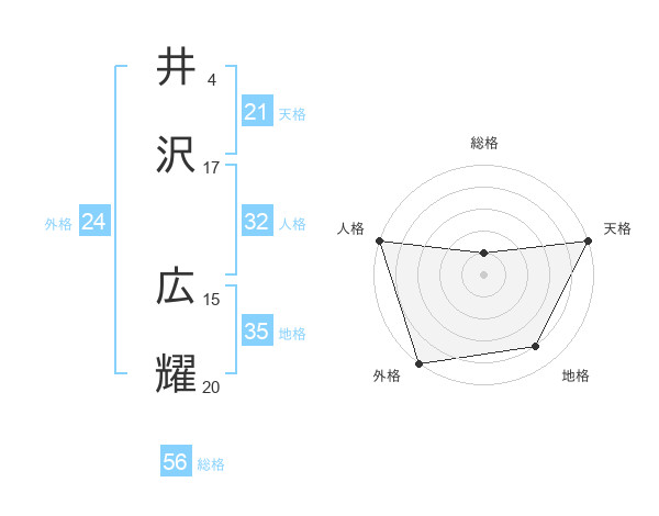 井沢 広耀さんを姓名の画数から五運を鑑定