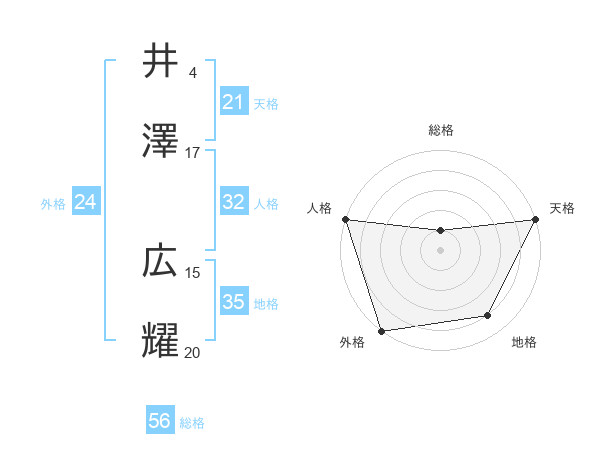 井澤 広耀さんを姓名の画数から五運を鑑定