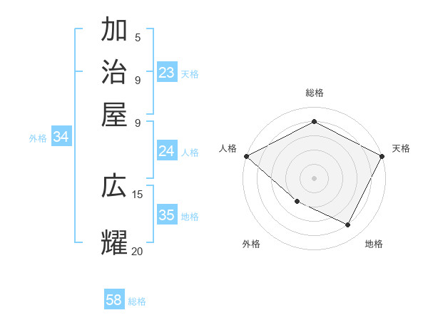 加治屋 広耀さんを姓名の画数から五運を鑑定