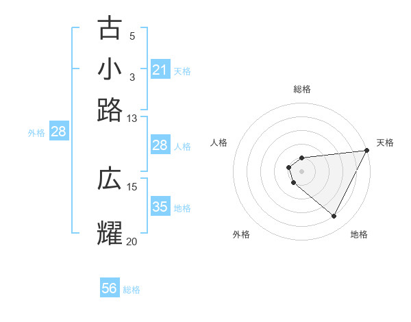 古小路 広耀さんの天格は21画の5点!