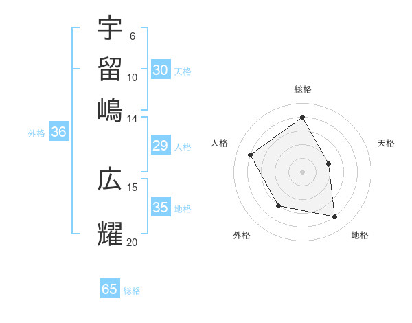 宇留嶋 広耀さんを姓名の画数から五運を鑑定